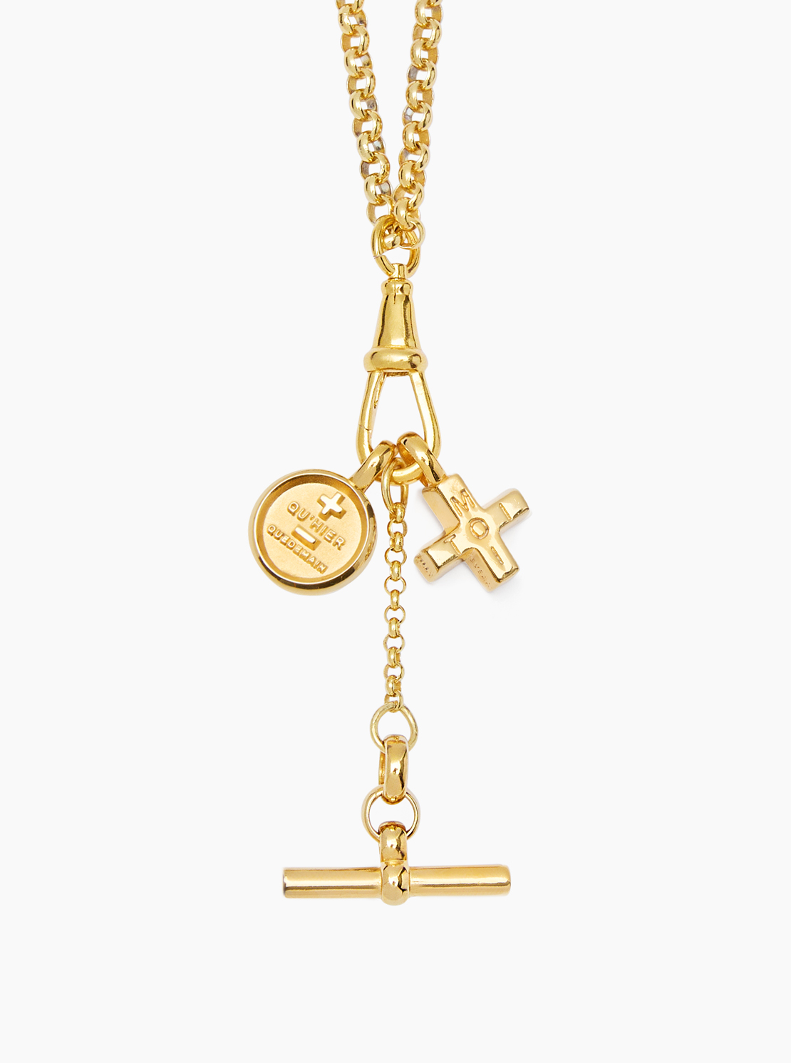 Why have one pendant when you can have three?! This sentimental charm cluster combines the Moi + Toi plus and the Que Demain disc with our iconic T-Bar.