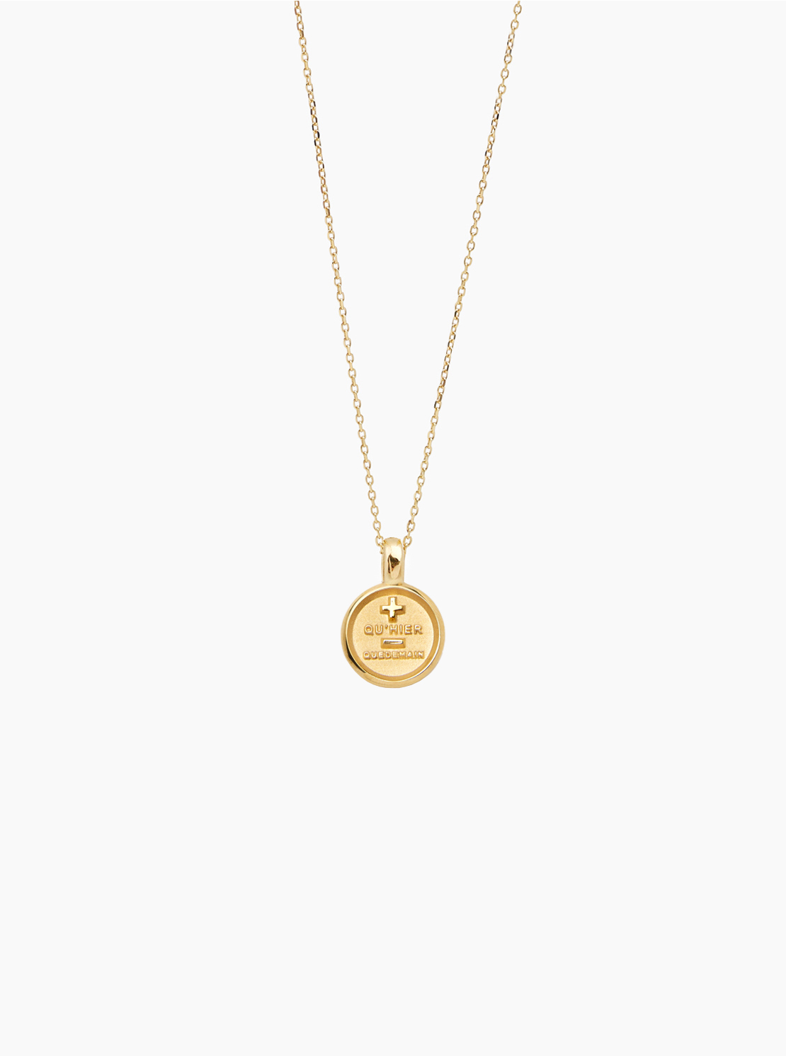 With just a trace of gold around your neck, the small Que Demain disc takes centre stage.